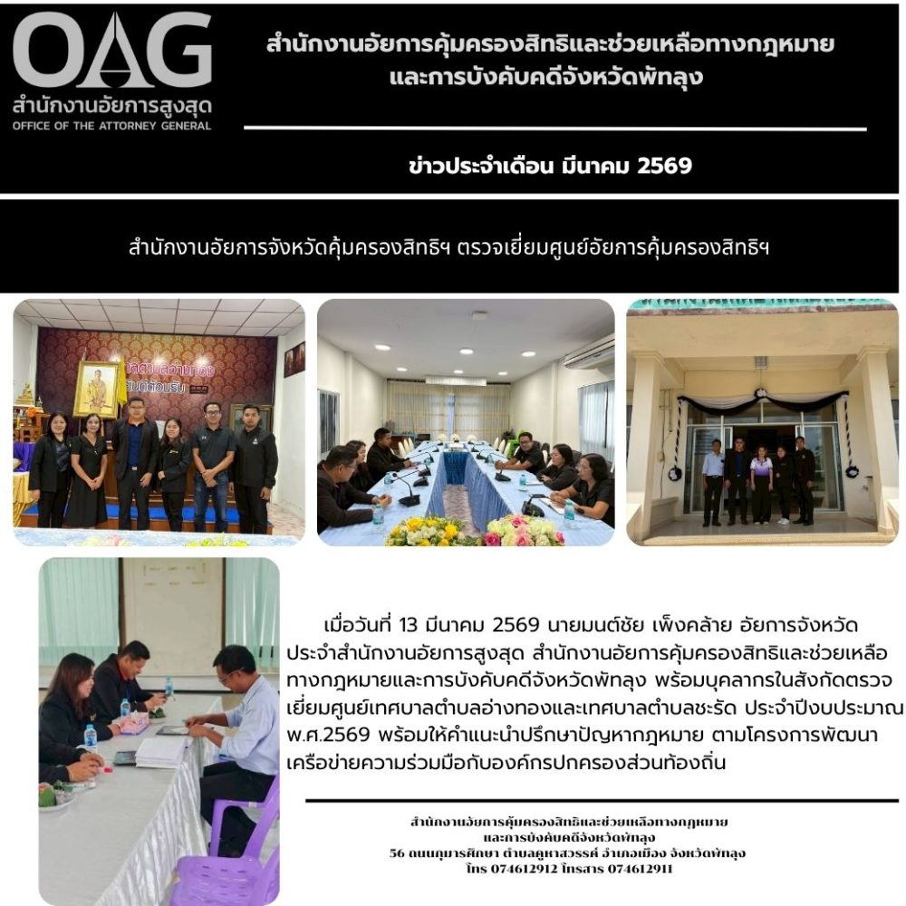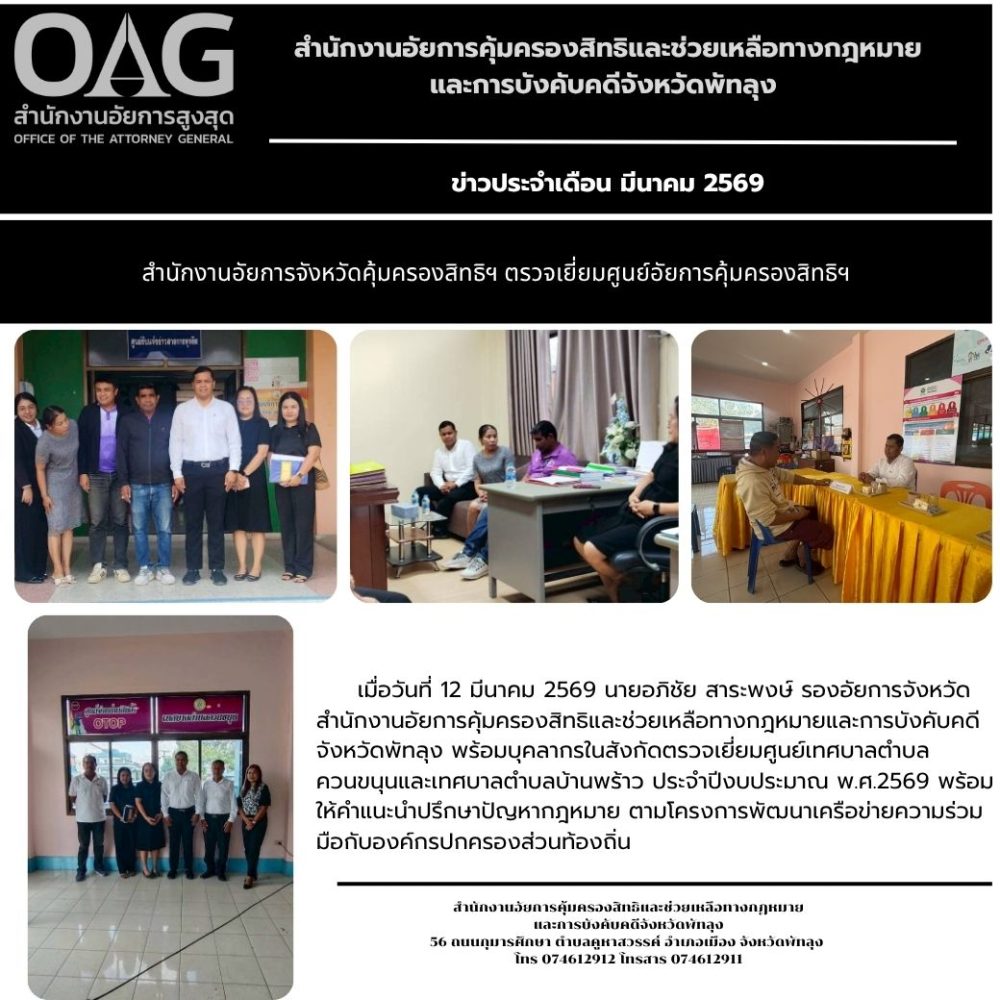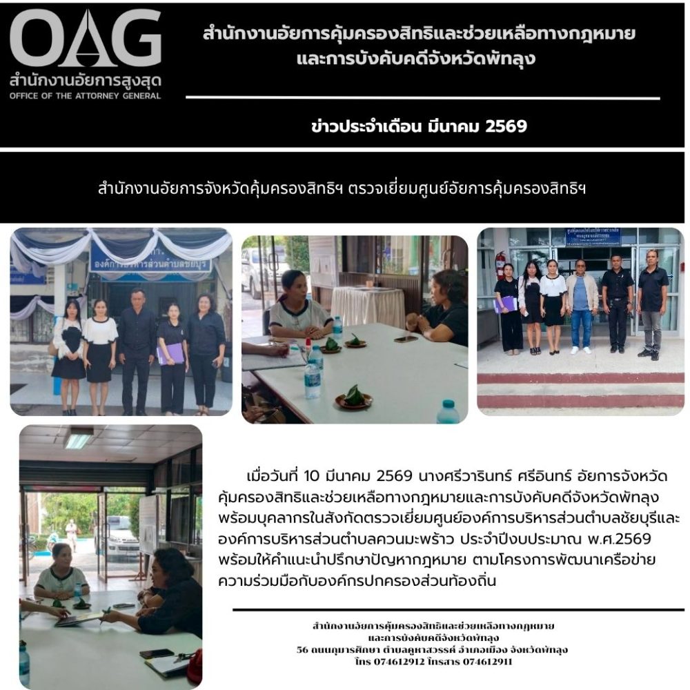 เมื่อวันที่ 6 เมษายน 2567 สำนักงานอัยการคุ้มครองสิทธิและช่วยเหลือทางกฎหมายและการบังคับคดีจังหวัดพัทลุง
