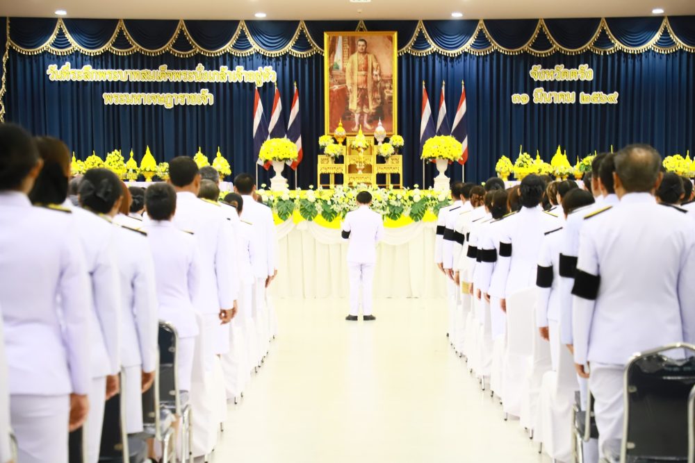 และในเวลา 08.30 น. ต่อเนื่องด้วยพิธีวางพวงมาลา เพื่อแสดงความจงรักภักดีและน้อมรำลึกในพระมหากรุณาธิคุณเนื่องใน “วันนวมินทรมหาราช” พุทธศักราช 2568