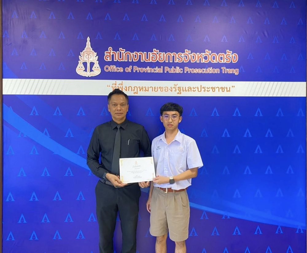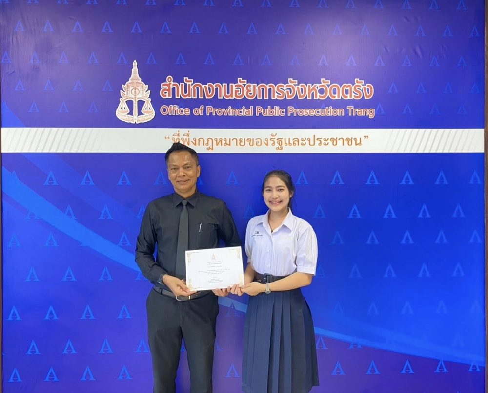 - วันพุธที่ 24 ธันวาคม 2568 นายอนันต์ ทองแก้วเกิด อัยการจังหวัดตรัง มอบเกียรติบัตรแก่นักศึกษา จากมหาวิทยาลัยวลัยลักษณ์ ที่ได้ปฏิบัติสหกิจศึกษาครบตามกำหนดระยะเวลาแล้ว