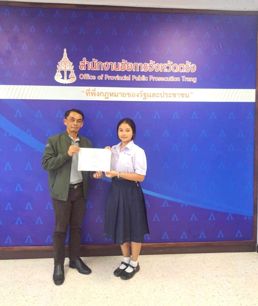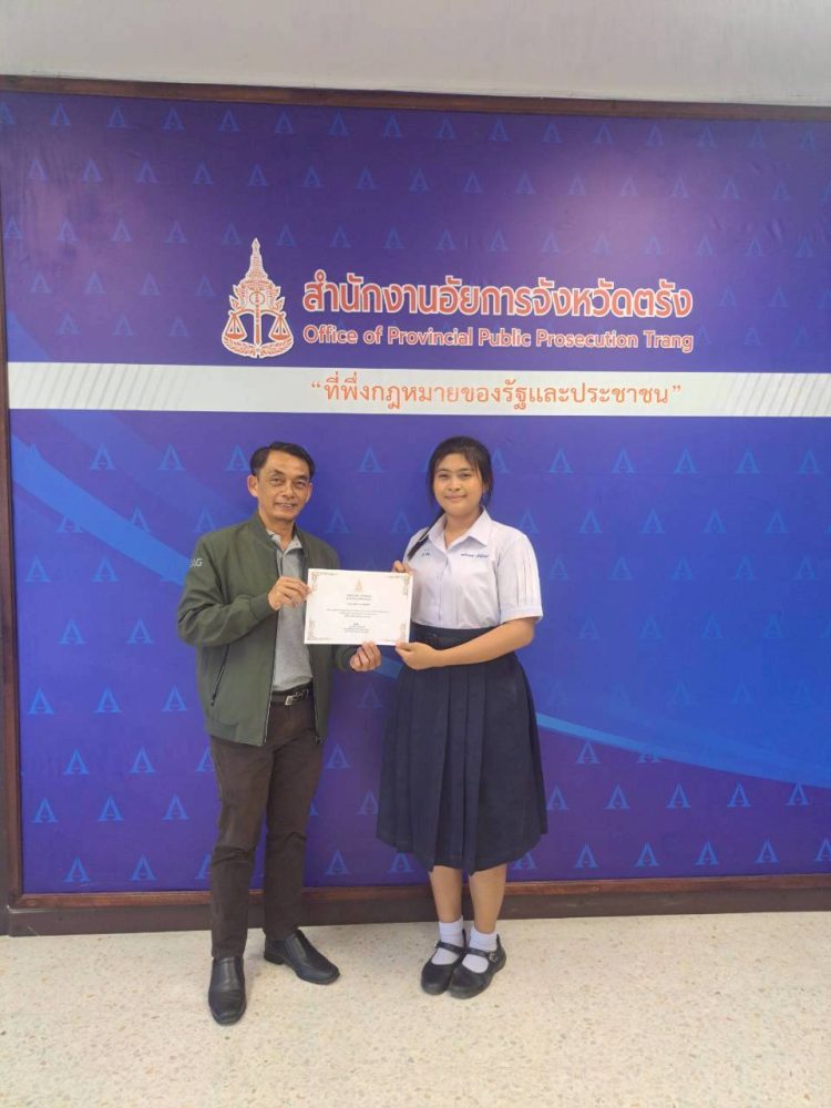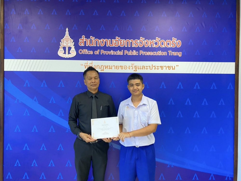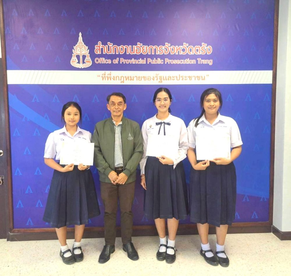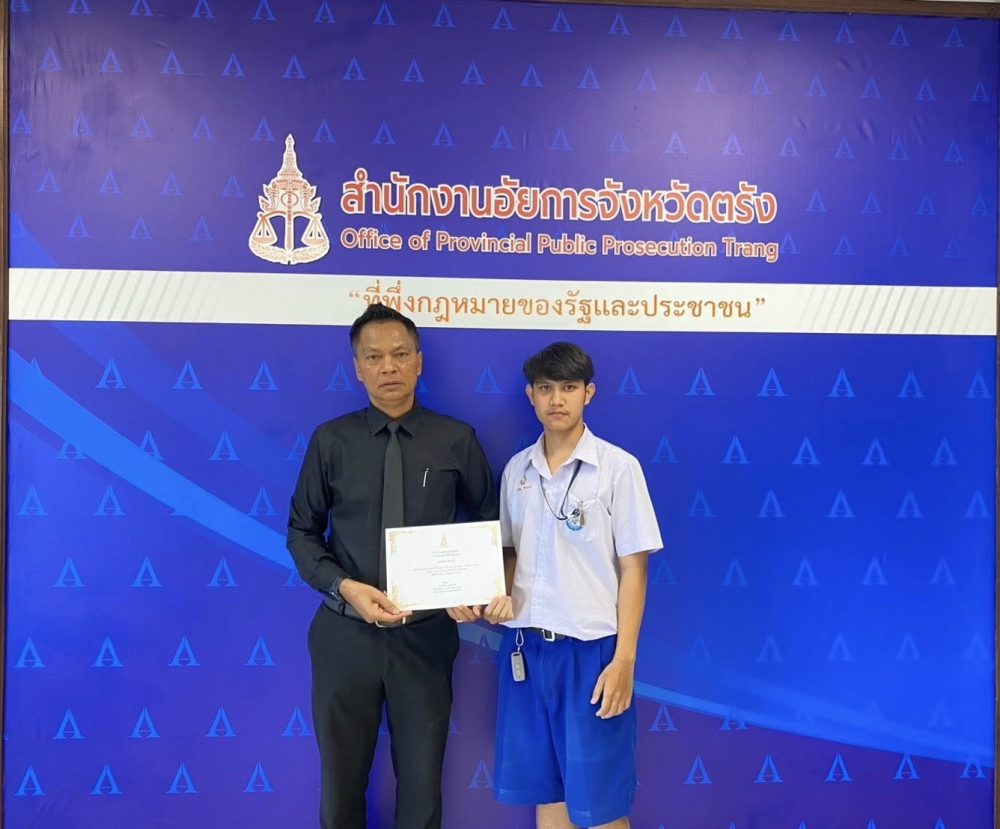 - วันศุกร์ที่ 27 มีนาคม 2569 นายนพดล พลกูล อัยการจังหวัดประจำสำนักงานอัยการสูงสุด รักษาราชการแทน อัยการจังหวัดตรัง มอบเกียรติบัตรแก่นักเรียนจากโรงเรียนกันตังพิทยากร และโรงเรียนเทศบาล 2 (วัดกระพังสุรินทร์) ที่ผ่านการฝึกประสบการณ์วิชาชีพครบตามกำหนดระยะเวลาแล้ว