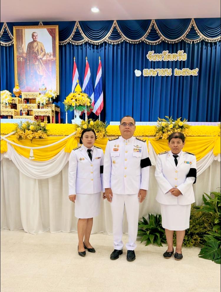 - วันอาทิตย์ทึ่ 6 เมษายน 2568 เวลา 07.30 น. ท่านพิพัฒน์ เพชรศรี อัยการจังหวัดประจำสำนักงานอัยการสูงสุด พร้อมด้วยข้าราชการธุรการ เข้าร่วมพิธีถวายเครื่องราชสักการะเนื่องในวันพระบาทสมเด็จพระพุทธยอดฟ้าจุฬาโลกมหาราช และวันที่ระลึกมหาจักรีบรมราชวงศ์ 6 เมษายน 2568 ณ ห้องประชุมศรีตรัง วิทยาลัยเทคนิคตรัง