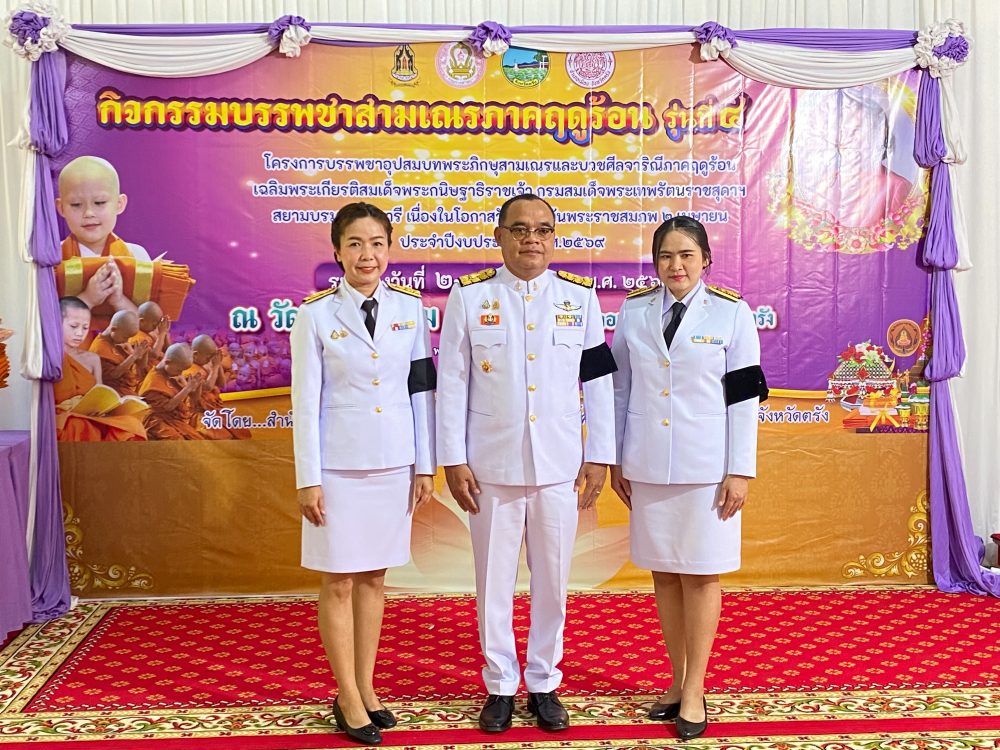 - วันพฤหัสบดีที่ 3 เมษายน 2568 เวลา 08.30 น. ท่านวรรณิตา คงทอง อัยการจังหวัดประจำสำนักงานอัยการสูงสุด (สำนักงานอัยการจังหวัดตรัง) พร้อมด้วยข้าราชการธุรการ เข้าร่วมกิจกรรมบรรพชาสามเณรภาคฤดูร้อน ภายใต้โครงการเสริมสร้างคุณธรรมจริยธรรมค่านิยมและความเป็นไทย ประจำปีงบประมาณ พ.ศ. 2568 เฉลิมพระเกียรติ สมเด็จพระกนิษฐาธิราชเจ้า กรมสมเด็จพระเทพรัตนราชสุดาฯ สยามบรมราชกุมารี เนื่องในโอกาสทรงเจริญ พระชนมายุ 70 พรรษา ในวันที่ 2 เมษายน 2568 ณ ที่วัดนิโครธาราม (วัดกุฏใน) อำเภอเมืองตรัง จังหวัดตรัง