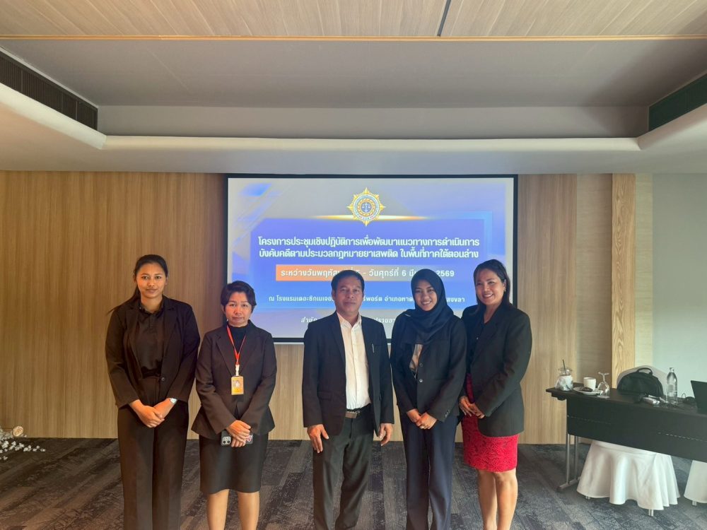 ด้วย สำนักงานป้องกันและปราบปรามยาเสพติดภาค 9 ดำเนินการจัดโครงการประชุมเชิงปฏิบัติการเพื่อพัฒนาแนวทางการดำเนินการบังคับคดีตามประมวลกฎหมายยาเสพติด ในพื้นที่ภาคใต้ตอนล่าง ระหว่างวันที่ 5-6 มีนาคม 2569 ณ โรงแรมเดอะซิกเนเจอร์ โฮเทล แอร์พอร์ต อำเภอหาดใหญ่ จังหวัดสงขลา