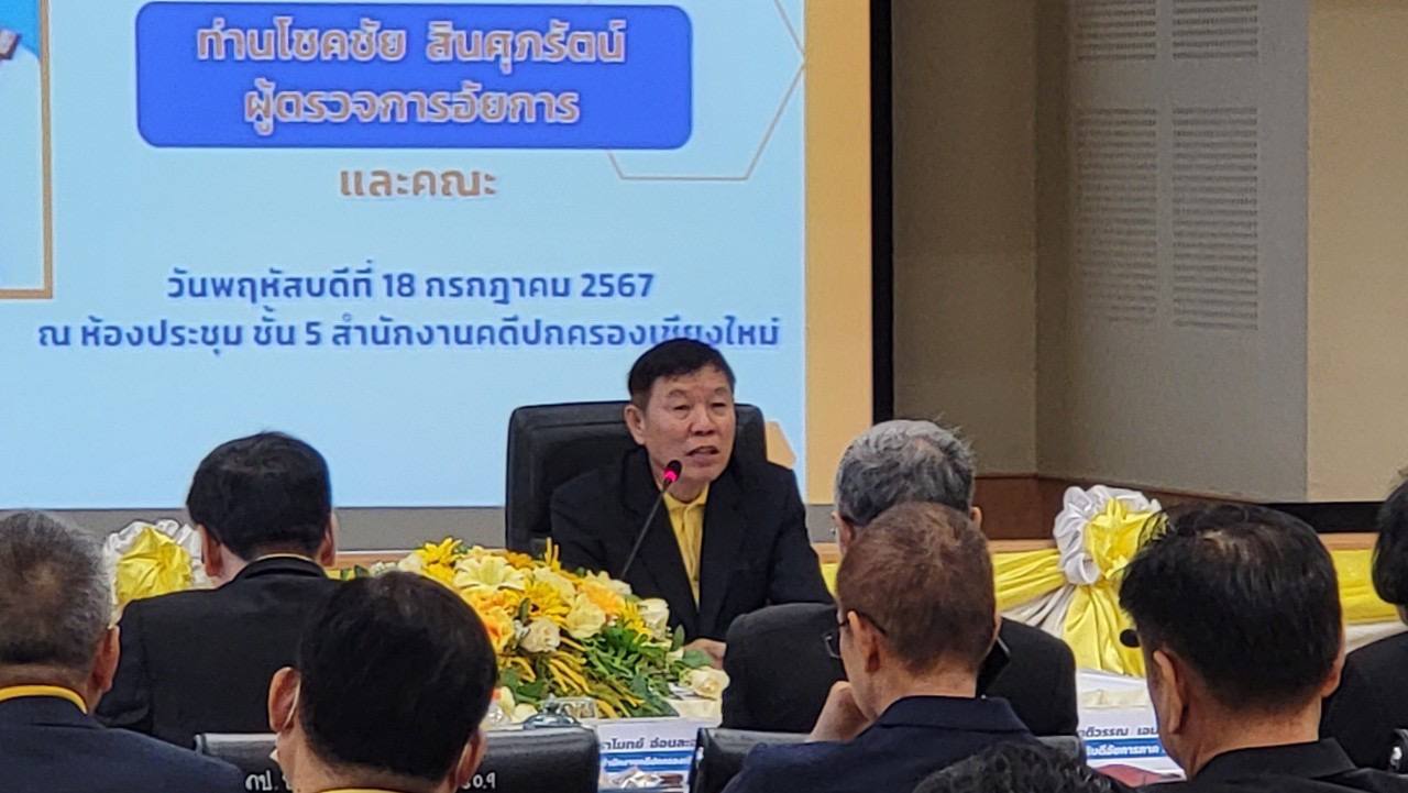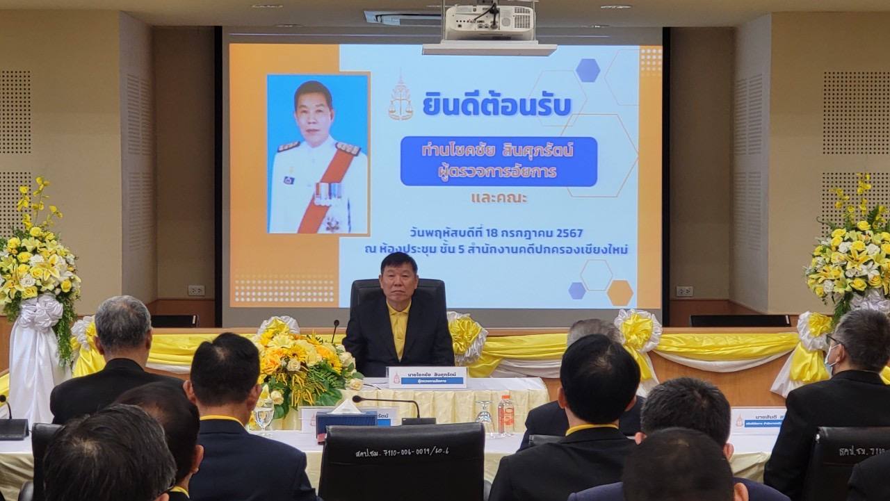 นายโชคชัย สินศุภรัตน์ ผู้ตรวจการอัยการ สำนักงานผู้ตรวจการอัยการ สำนักงานอัยการสูงสุด พร้อมคณะ ตรวจราชการสำนักงานอัยการในเขตท้องที่ภาค ๕ ประจำปีงบประมาณ พ.ศ. ๒๕๖๗ ณ ห้องประชุม ชั้น ๕ สำนักงานคดีปกครองเชียงใหม่ ตำบลช้างเผือก อำเภอเมืองเชียงใหม่ จังหวัดเชียงใหม่